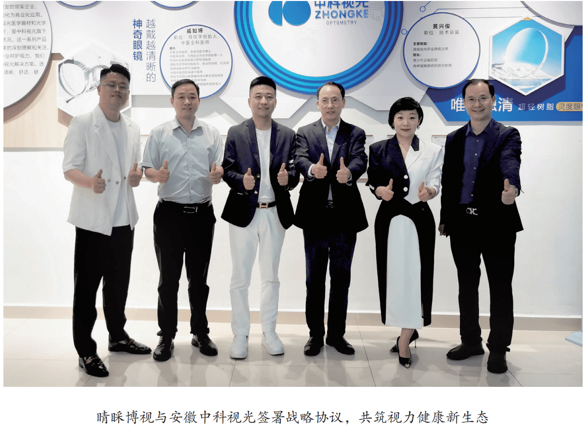2025年4月23日,国内护眼行业出名企业睛睬博视的董事长东先生率团队亲赴中科视光调查,正在深切领会和体验灵度眼镜后,两边就地签订了计谋合做和谈。合做内容包罗产物融合(将睛睬博视的智能护眼设备取灵度镜片手艺连系)和办事收集扩展(依托睛睬博视全国几千店共建办事系统)。睛睬博视方面高度评价中科视光的科研实力,认为其立异取本身“科技护眼”高度契合。此次强强结合,不只是贸易上的共赢,更是对灵度眼镜手艺先辈性和市场潜力的无力印证。