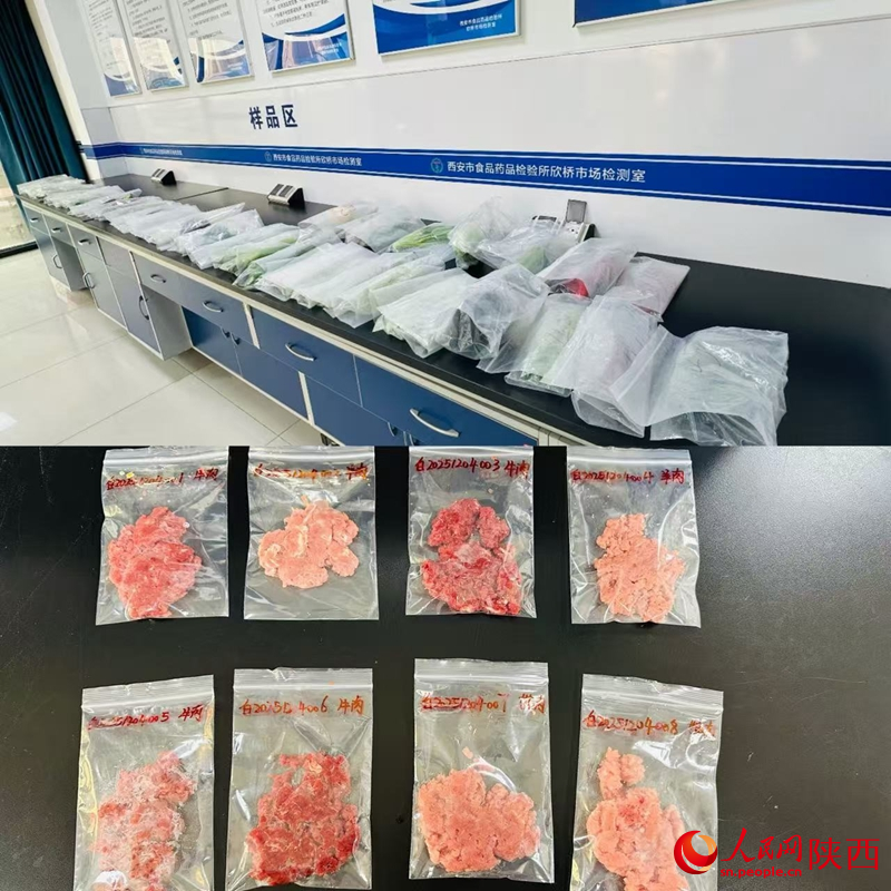 市场检测室内,检测员张佩正将抽样的菜品和肉类别离编号陈列。“快速抽检的肉类分量不得低于50g,阳性即为及格。当天的检测成果会正在市场夺目进行及时公示,市场里的商户给学校、企业等供货时,必必要出示检测成果。