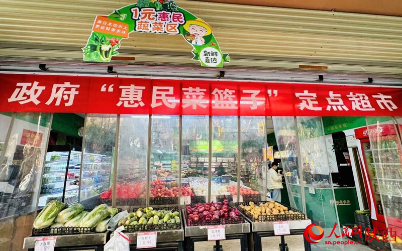 西安农投集团生鲜曲供连合二店被选为“惠平易近菜篮子”定点超市,店外的“一元惠平易近蔬菜区”,让群众低价买到“安心菜”。