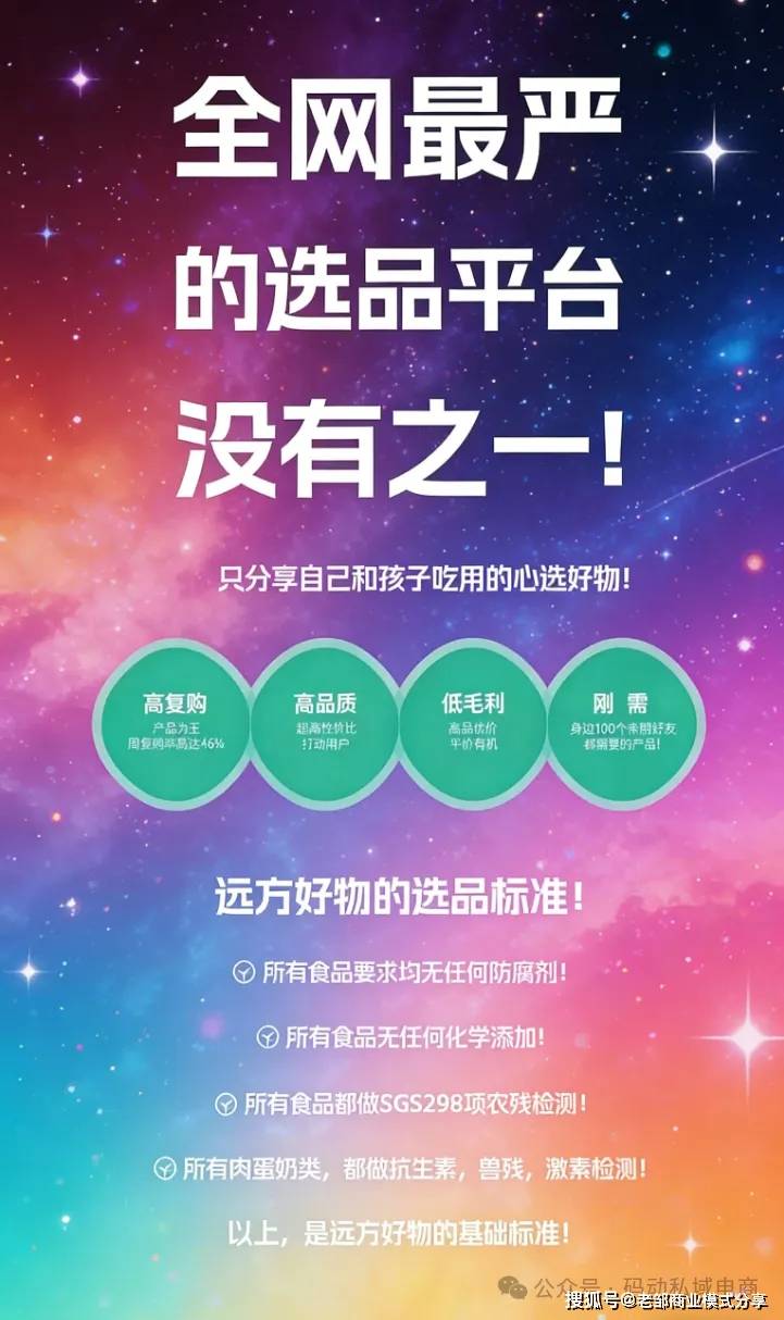 正在健康食物赛道,“信赖”是成交的焦点前提。远方好物之所以能实现高复购,环节正在于从“供应链”和“私域”两个维度建立了不成替代的信赖壁垒,将“一次易”为“持久信赖关系”。取保守电商“简单对接供应商”分歧,远方好物的焦点动做是“沉构供应链”,通过泉源把控实现“优良低/价”,同时用通明化机制成立用户信赖。(1)、泉源曲采,剔除溢价:深切全国29个省份、183座城市,签约600余家无机农场及泉源工场,跳过两头经销商环节,间接对接出产端,将采购成本降低30%-50%,让用户以亲平易近价/格买到优良健康食物;(2)、沉投质检,严控质量:每年投入超1500万元用于质量检测,成立“首检+抽检+飞检”的三沉检测系统,结合SGS等6家权势巨子检测机构,同时签约“中国质量万里行”,从第三方背书强化质量信赖;(3)、通明溯源,可视化信赖:出产线小时曲播模式,用户可及时查看产物出产过程;同时搭建完美的产物溯源系统,从原料种植到成品出库的全链均可逃溯,让“健康、平安”看得见、可验证。远方好物的高复购暗码,藏正在其“深度用户运营”的私域逻辑里——不逃求“海量用户浅笼盖”,而是专注“精准用户深绑定”,实现周复购率46。7%的行业高程度。(1)、高复购焦点逻辑:践行“1000个95分产物卖给1小我”的运营,通过持续供给优良产物,深化单用户信赖,让用户从“测验考试采办”变为“持久复购”;(2)、全链东西赋能:为小b端供给免费的AI养分师、尺度化社群运营SOP、线下勾当筹谋方案等东西,降低小b端的运营门槛,让即便没有私域经验的参取者也能快速上手;(3)、线上线下联动结构:规划将来3年搭建10万家社区店,打制“线上私域+线验”的联动节点,实现线上引流、线验,线下获客、线上复购的双向赋能。取发卖实绩强绑定的收益模子,建立了良性的生态增加轮回,既激励小b端积极参取,又保障了模式的合规性。